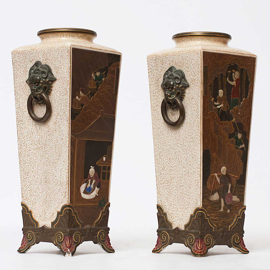 Pair of 1874 Royal Worcester Chinoiserie Vases