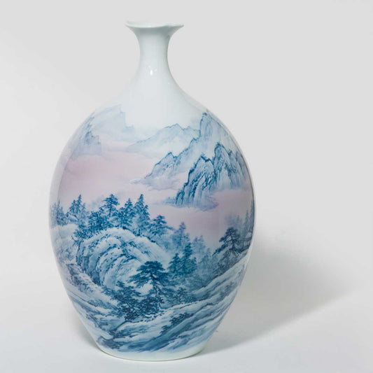 Large Hand-painted Porcelain Landscape Vase by Shumei Fujii